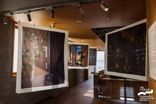 在地艺术共创板块中,五组创作者进入松阳老城展开介入式创作:艺术家郭航在城隍庙呈现竹编艺术作品《鲲》;艺术家曾健勇在文庙创作平面喷绘与绘画作品《渔樵耕读》;艺术家文那与松阳豺虎画非遗传承人郑王义在何联奎故居带来油纸灯笼作品《张灯结彩》;建筑师、艺术家刘阳在汤兰公所呈现互动装置《葫芦金刚》;摄影艺术家陈荣辉以《老街的寻常一夜》在书店与文里片区呈现影像作品。